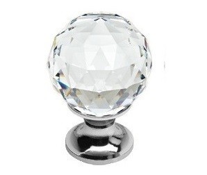 Ручка кнопка 200200PB040CR, материал Латунь, отделка Кристаллы Swarovski Хром, d=40 мм